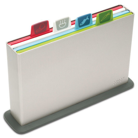 Набор разделочных досок Index – хит бренда Joseph Joseph с 2008 года, завоевавший множество наград за функциональность и дизайн. Компактный кейс из высококачественного пластика вмещает в себя 4 доски, каждая из которых предназначена для определенного вида продуктов. Вы легко догадаетесь по специальному ярлычку, на чём резать рыбу, мясо или овощи.